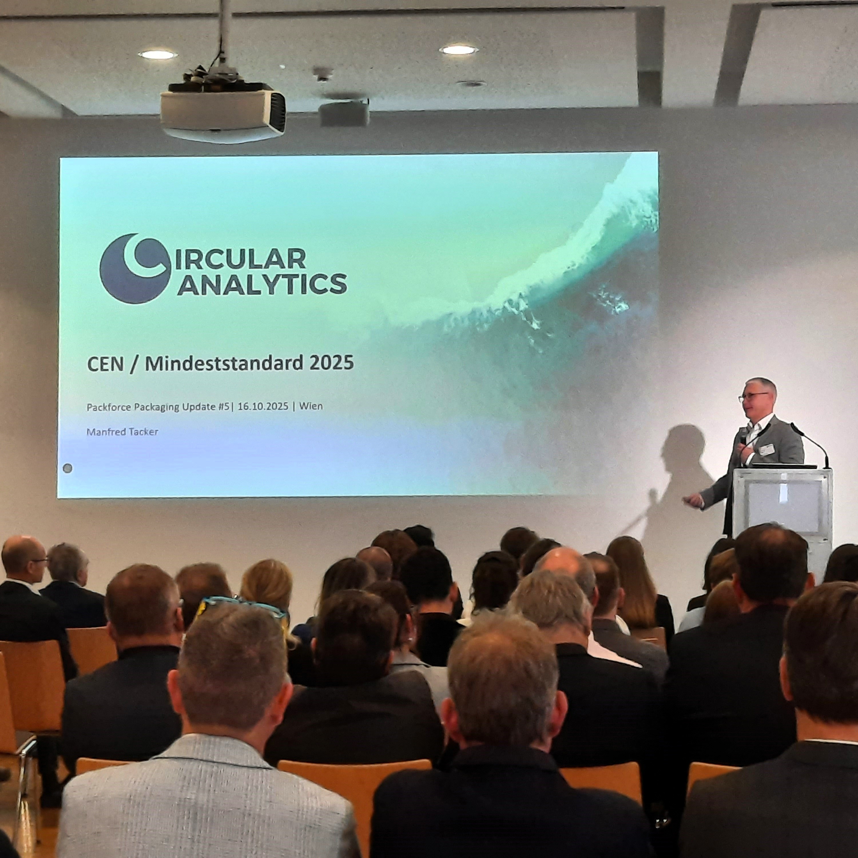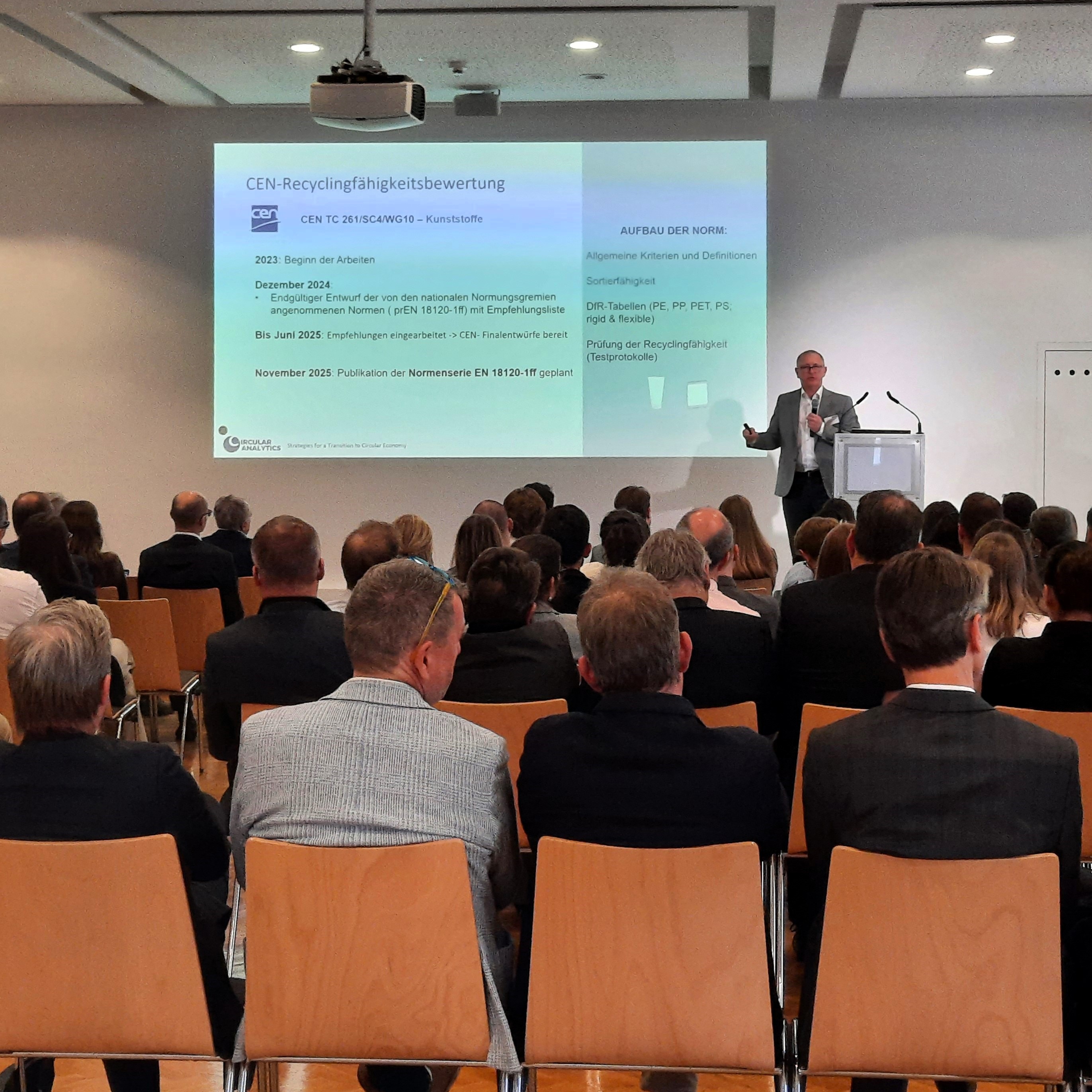 Ein spannendes Update zu den aktuellen Entwicklungen im CEN-Design for Recycling Standard und im deutschen Mindeststandard (DMS) bot Manfred Tacker von Circular Analytics. Im Vergleich der beiden Richtlinien wurden deutliche Unterschiede sichtbar, die in der Praxis erhebliche Auswirkungen haben. Während CEN auf state of the art Sortier- und Recyclingverfahren setzt, orientiert sich der DMS an der bestehenden Infrastruktur in Deutschland.