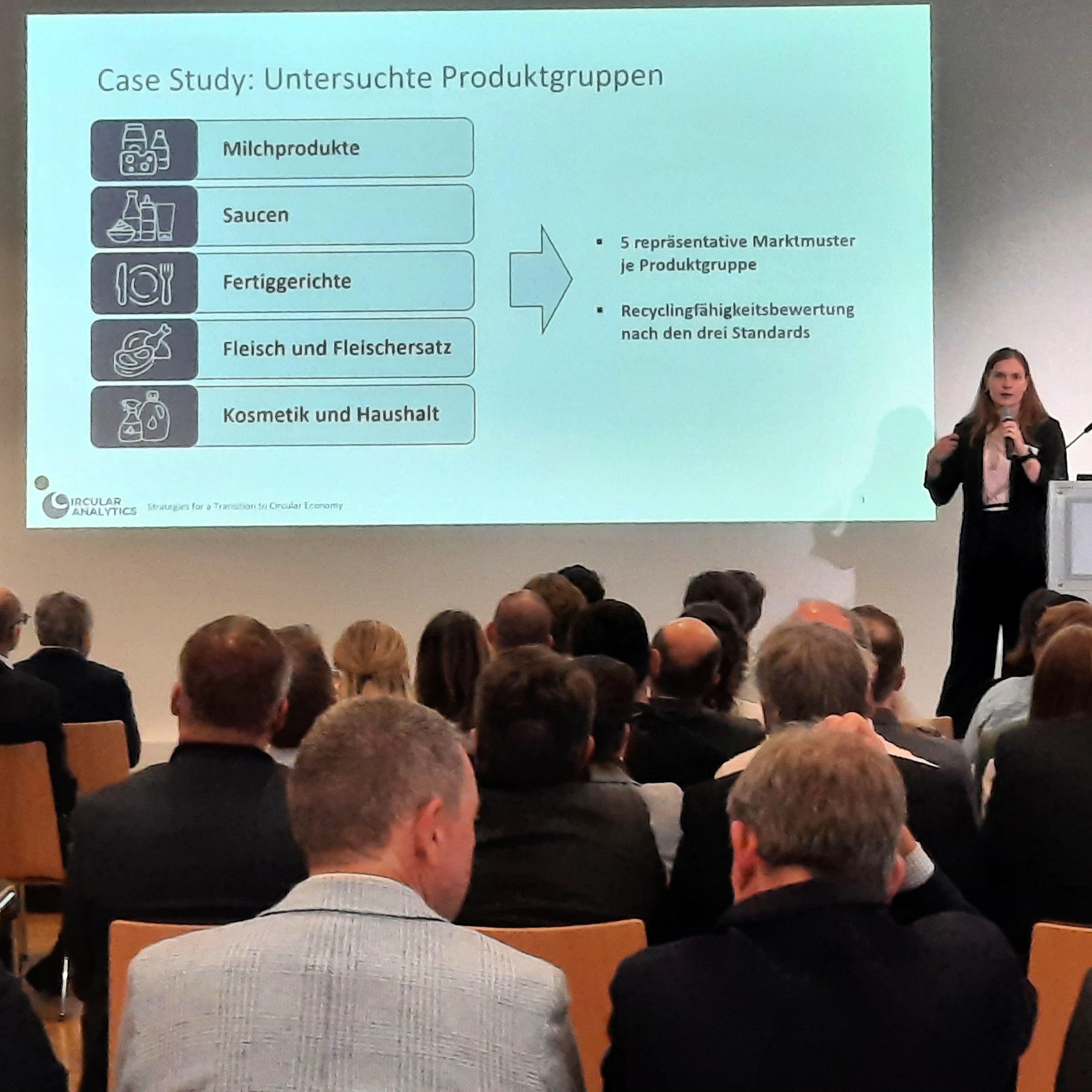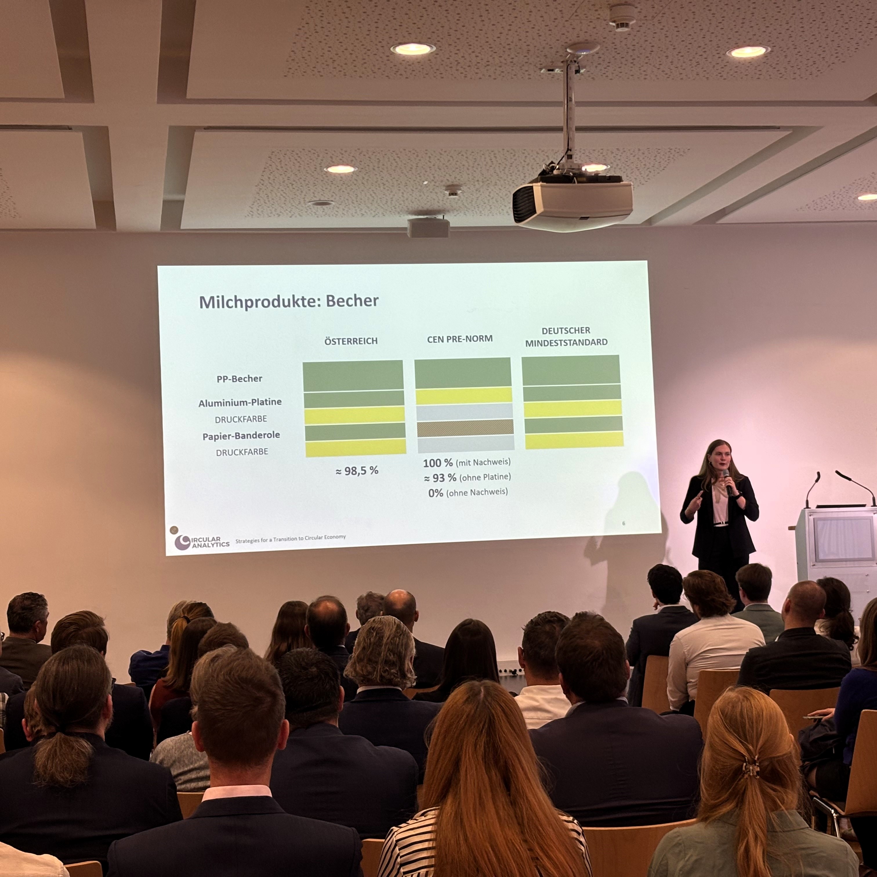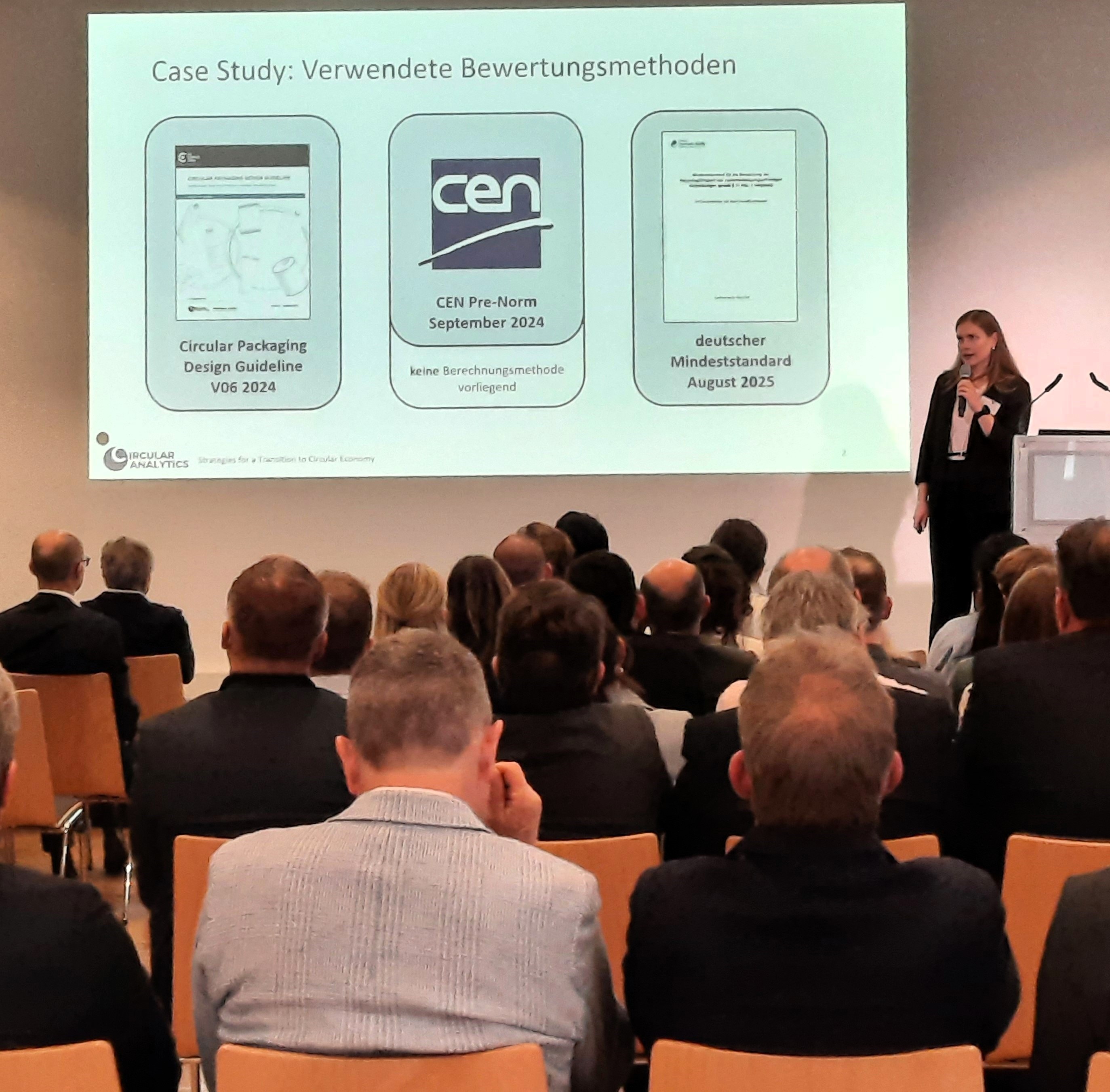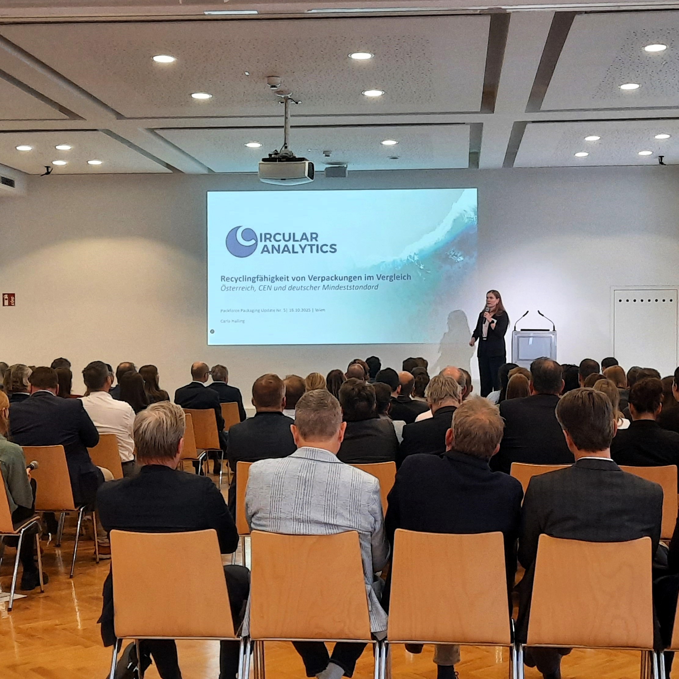 Nach dieser theoretischen Einführung zeigte Carla Halling von Circular Analytics die praktische Umsetzung anhand einer Fallstudie: Verpackungen aus verschiedenen Produktgruppen wurden gemäß dem deutschen Mindeststandard (2025), der CEN-Prä-Norm sowie dem aktuellen österreichischen Standard auf ihre Recyclingfähigkeit bewertet. Die Ergebnisse verdeutlichten, in welchen Bereichen Handlungsbedarf besteht und wie sich die Bewertung künftig durch die neue CEN-Norm und die PPWR verändern wird.