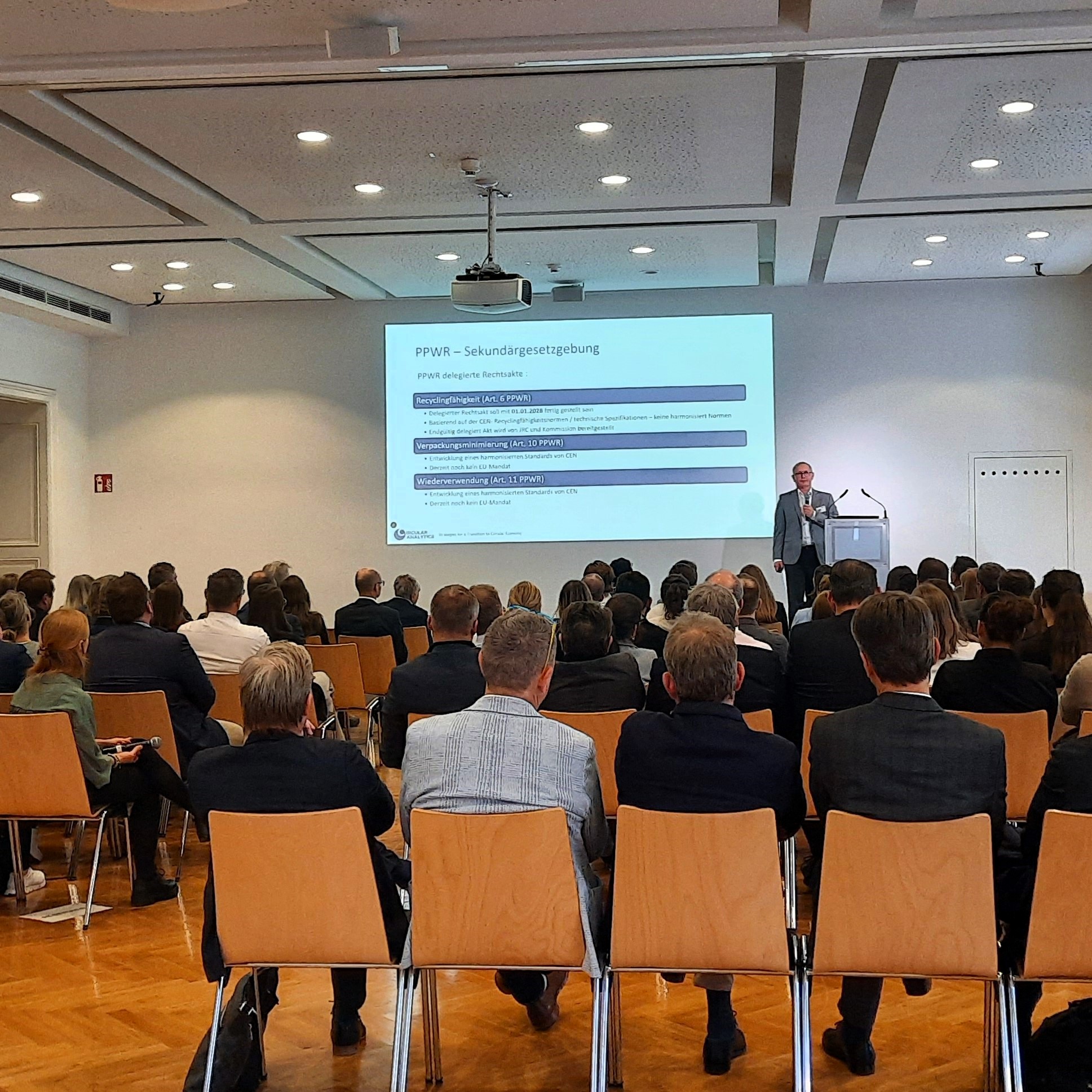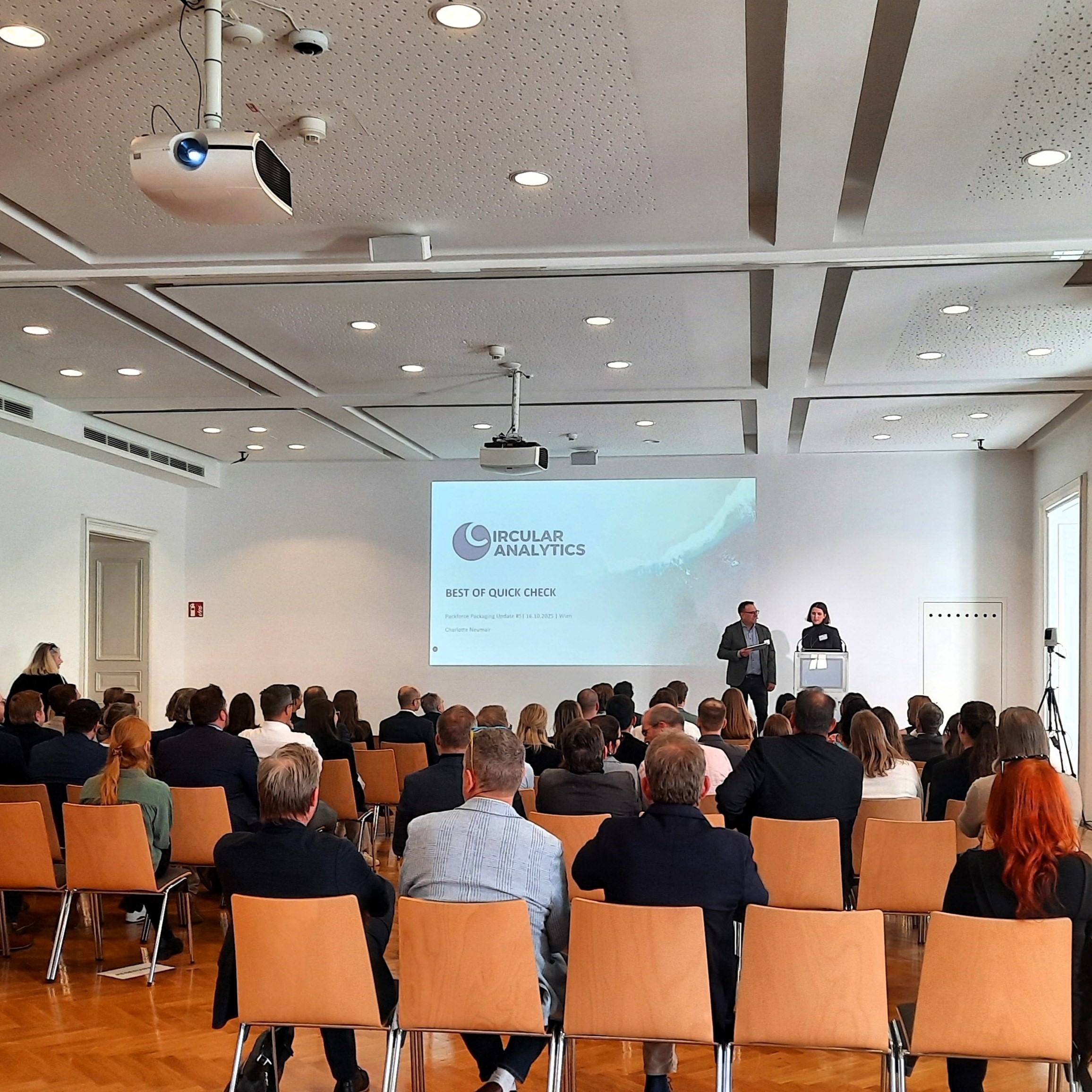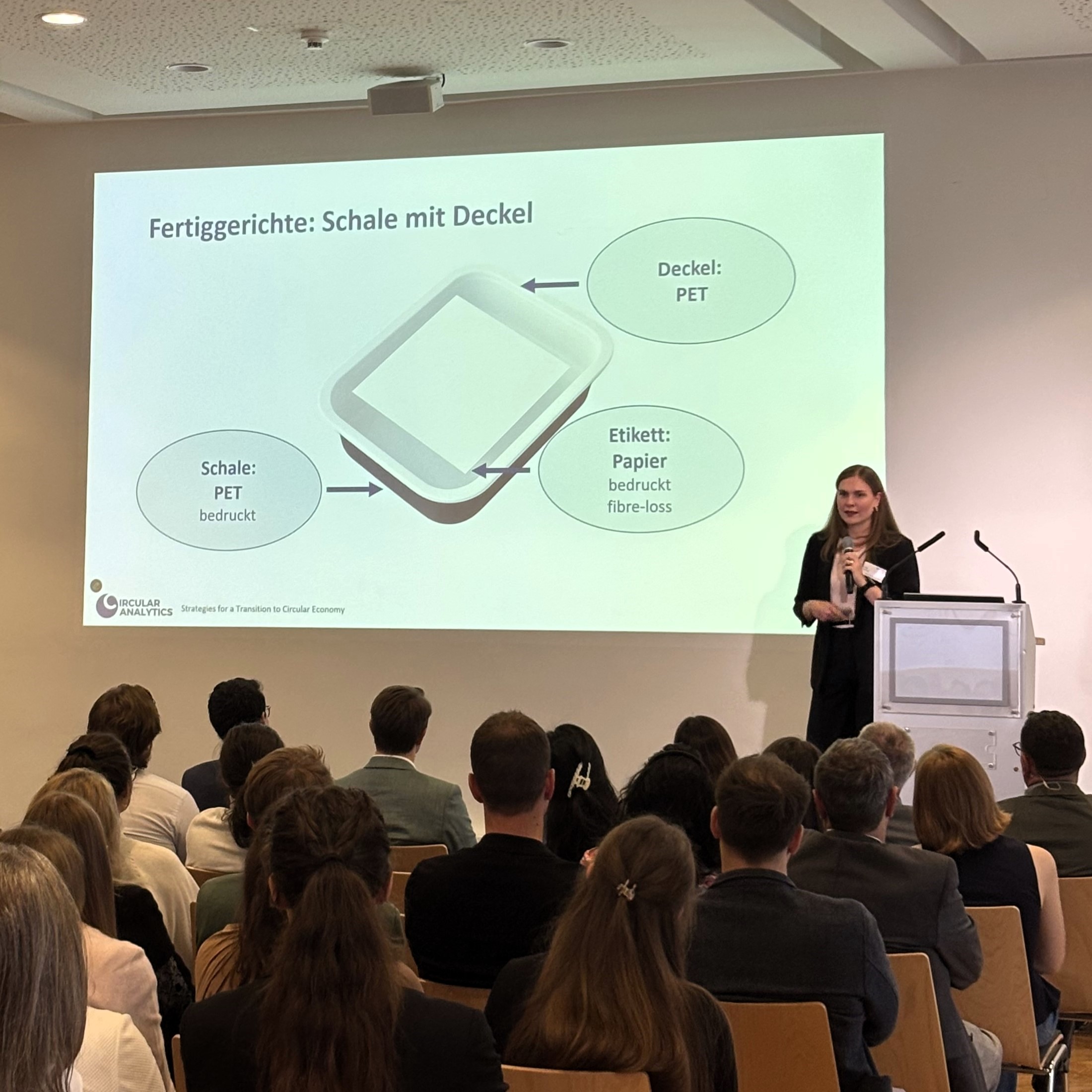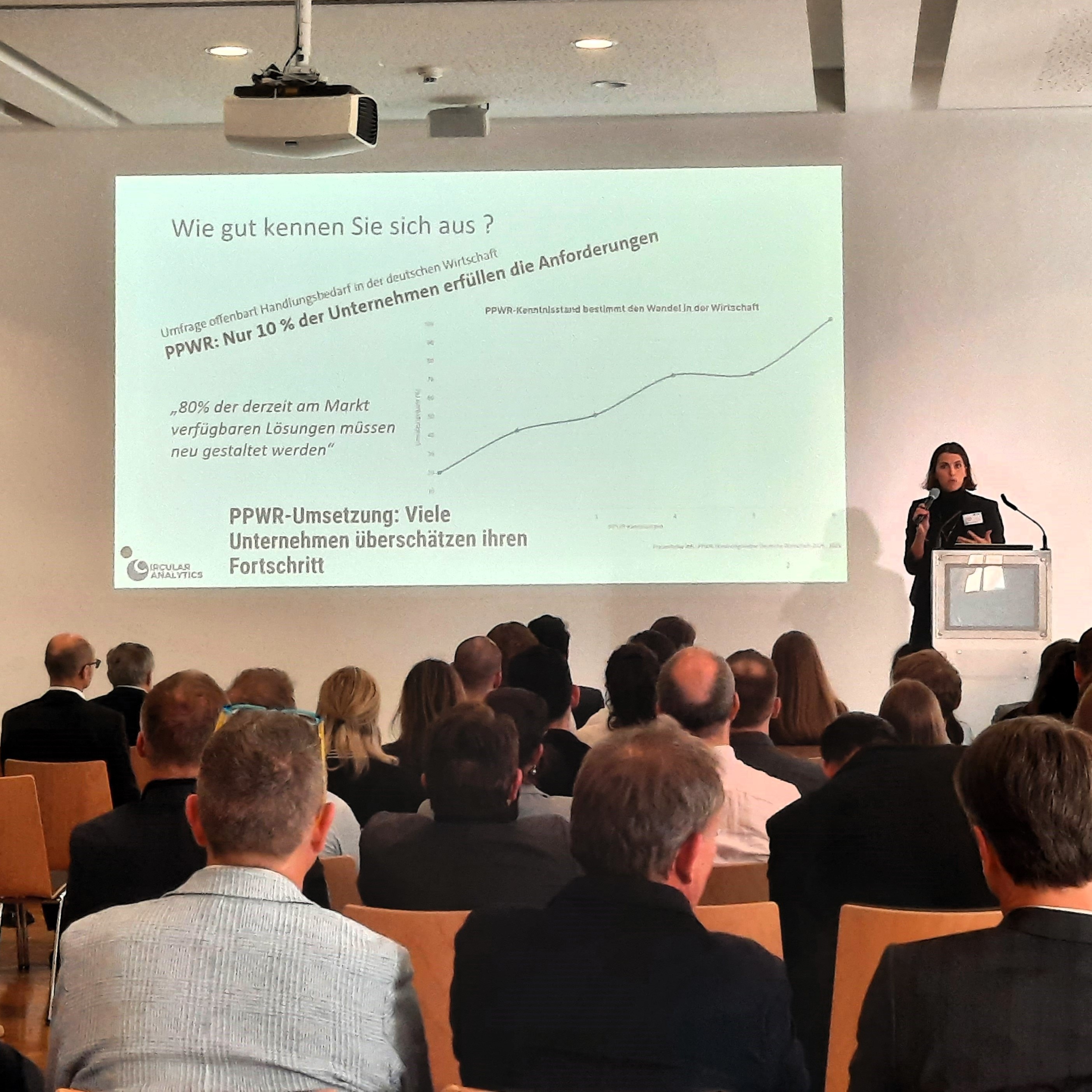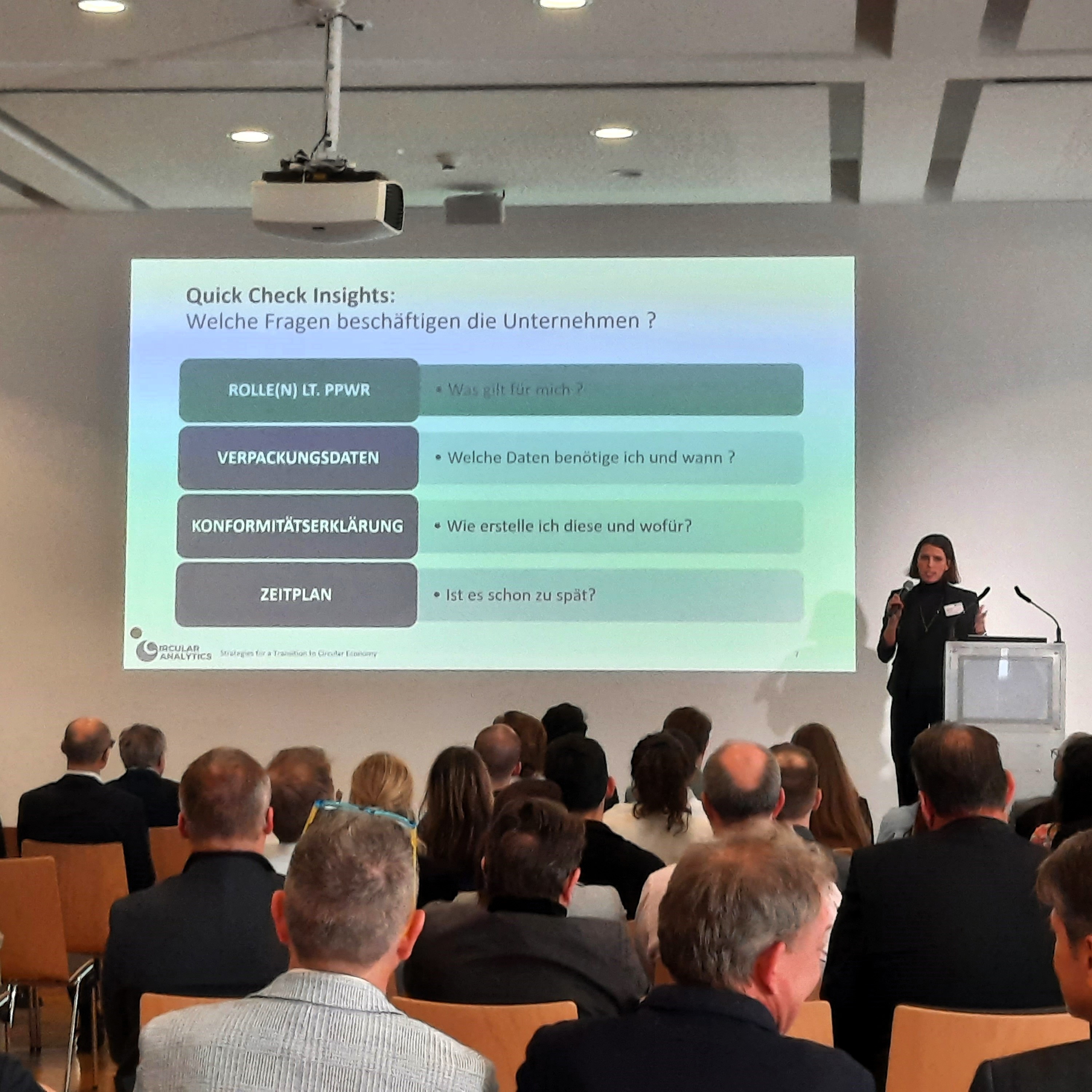Charlotte Neumair von Circular Analytics gab einen kompakten Überblick über die Themen, die Unternehmen im Zusammenhang mit der PPWR derzeit besonders beschäftigen – von Recyclingfähigkeit über Minimierung und Datenverfügbarkeit bis hin zur Konformitätserklärung. Sie teilte zentrale Erkenntnisse zu den aktuell größten Herausforderungen und zeigte praxisnahe Ansätze für eine effiziente Umsetzung der PPWR auf.