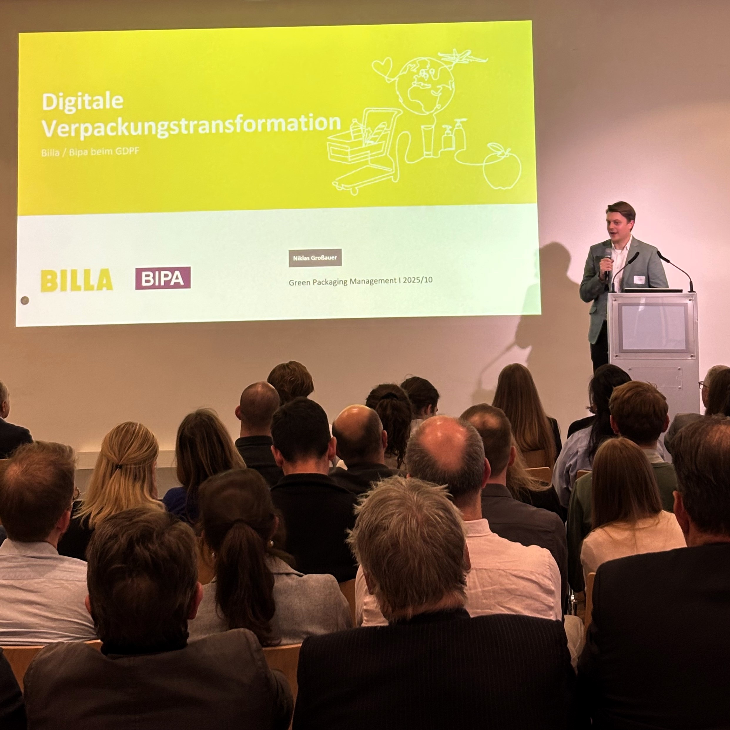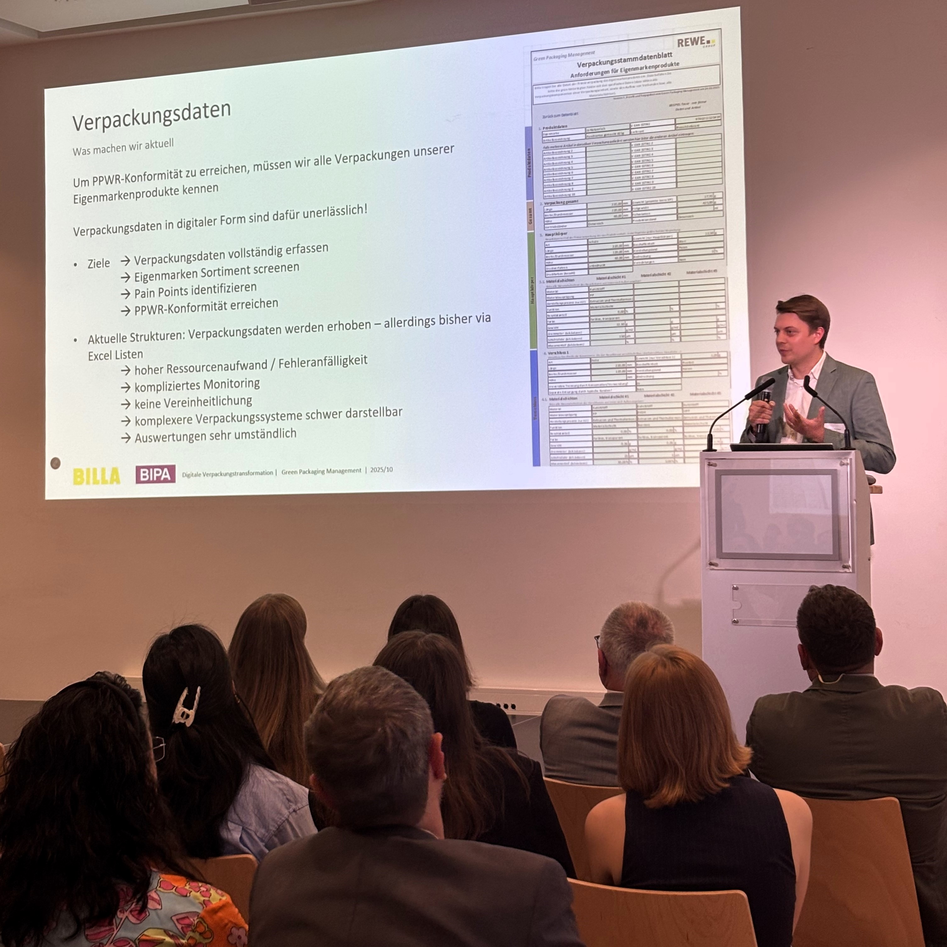 Der Vortrag von Mathias Egger von Packaging Cockpit und Niklas Großauer von Billa zeigte schließlich, wie digitale Ansätze entlang der gesamten Wertschöpfungskette Transparenz und Effizienz fördern und veranschaulichte dies durch praxisnahe Beispiele zur Digitalisierung von Verpackungsdaten und deren Nutzen für eine gut abgestimmte und regelkonforme Lieferkette.