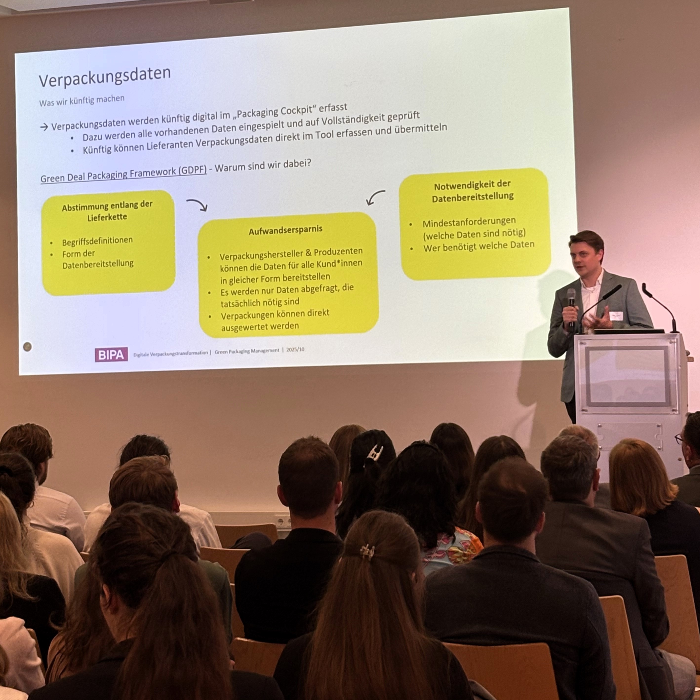 Die fünfte Veranstaltung widmete sich neuen Verpackungsvorschriften und deren Anwendung in der Praxis sowie der Harmonisierung digitaler Verpackungsinformationen entlang der Supply Chain.